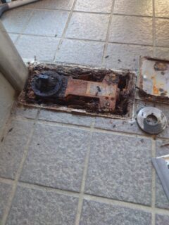 マンションエントランスにてフロアヒンジの交換工事を行いました。